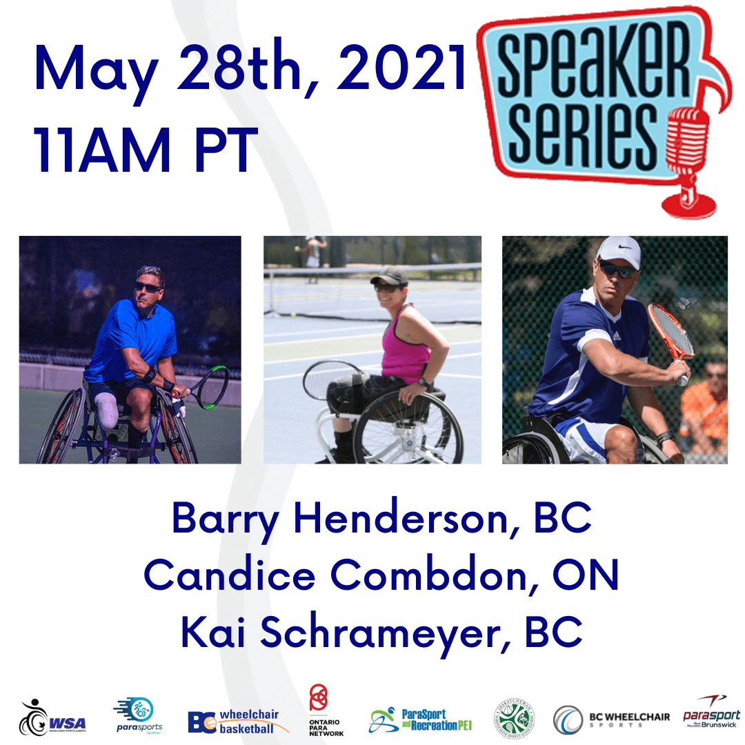 Wheelchair tennis athletes Barry Henderson (BC) and Candice Combdon (Ontario) joined us along with Coach and Paralympic medalist Kai Schrameyer on Friday, May 28th to discuss their experiences in wheelchair tennis and encourage new participants to get involved in this exciting and skillful sport that can be played almost anywhere.